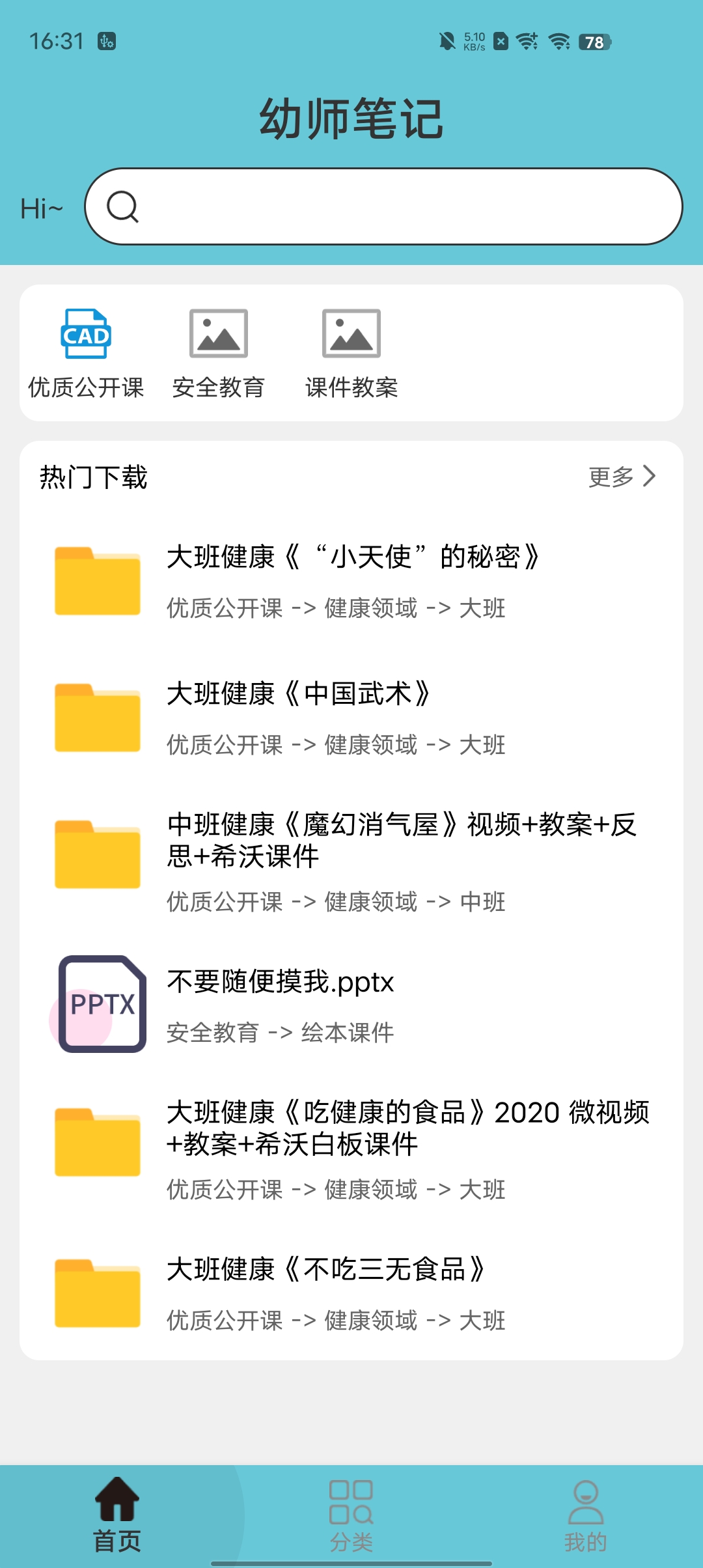 2、海量电子素材:海量高清精品图谱,环创手工、纸面教具、调查表、海报、奖状、手指操、动画、古诗等素材,助力老师轻松备课;